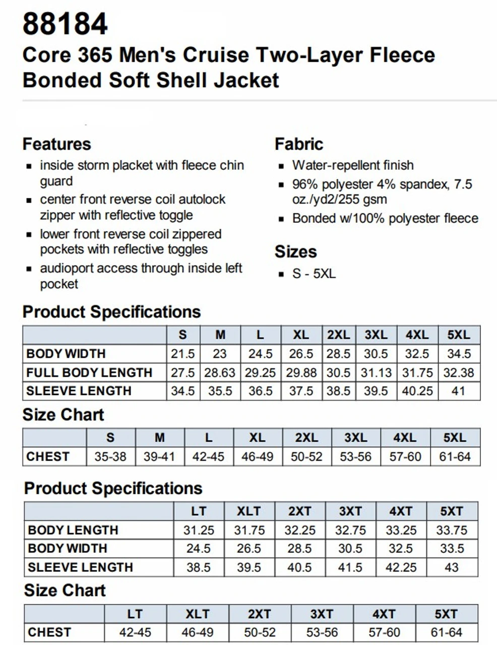 | Size | SMALL, MEDIUM, LARGE, XL, 2XL, 3XL, 4XL, 5XL, L TALL, XL TALL, 2XL TALL, 3XL TALL, 4XL TALL, 5XL TALL |